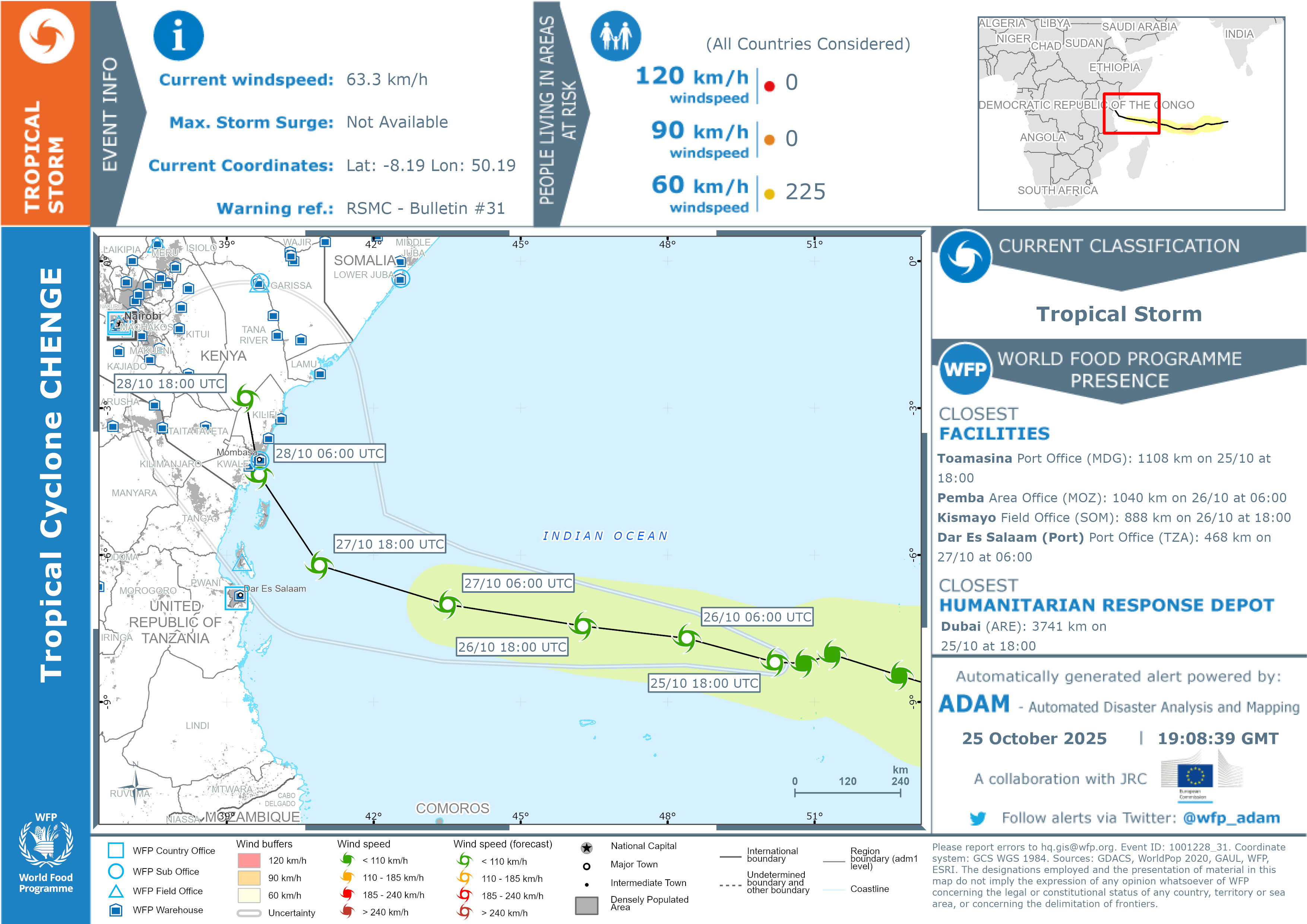 Madagascar + 2 more Tropical Cyclone Chenge - Wind Dashboard (25 Oct 2025) Format Map Source WFP Posted 26 Oct 2025 Originally published 25 Oct 2025 Origin View original Attachments Download Map (PDF | 1.03 MB)